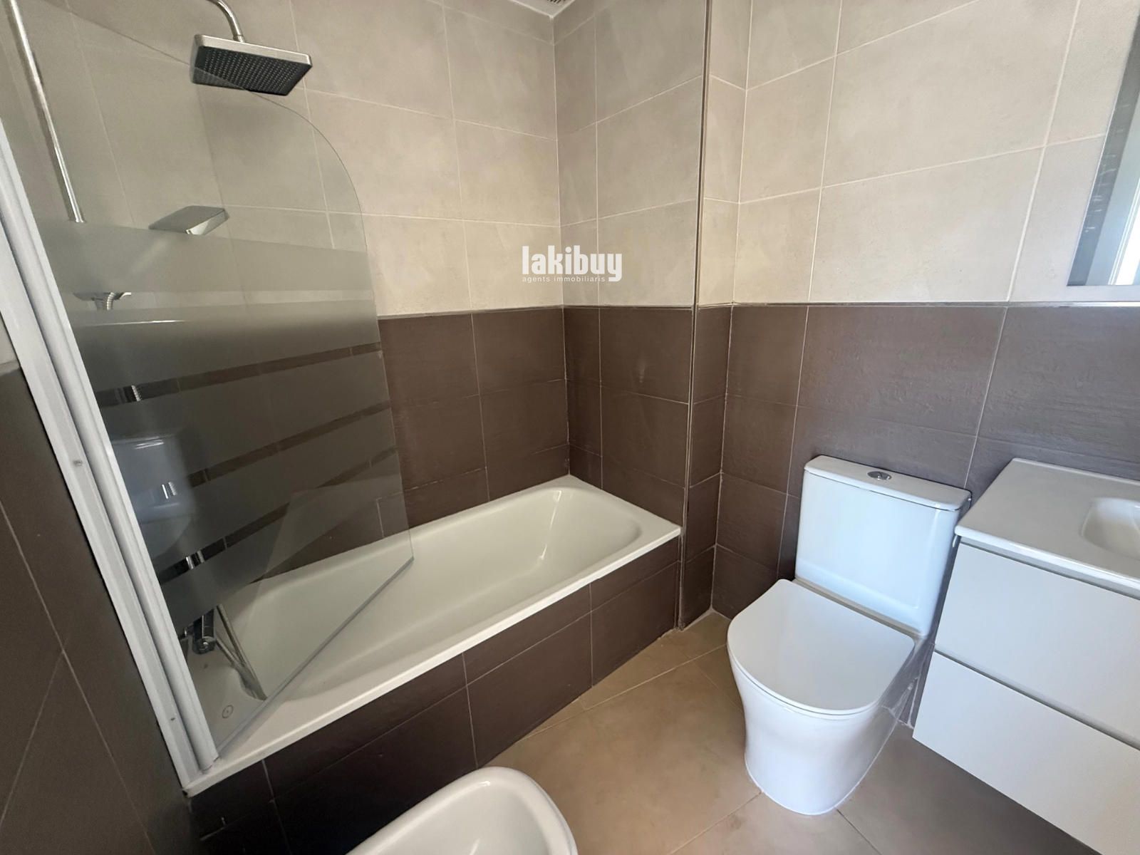 Banys: Bany complet, modern i totalment equipat amb mampara, moble de disseny i mirall.